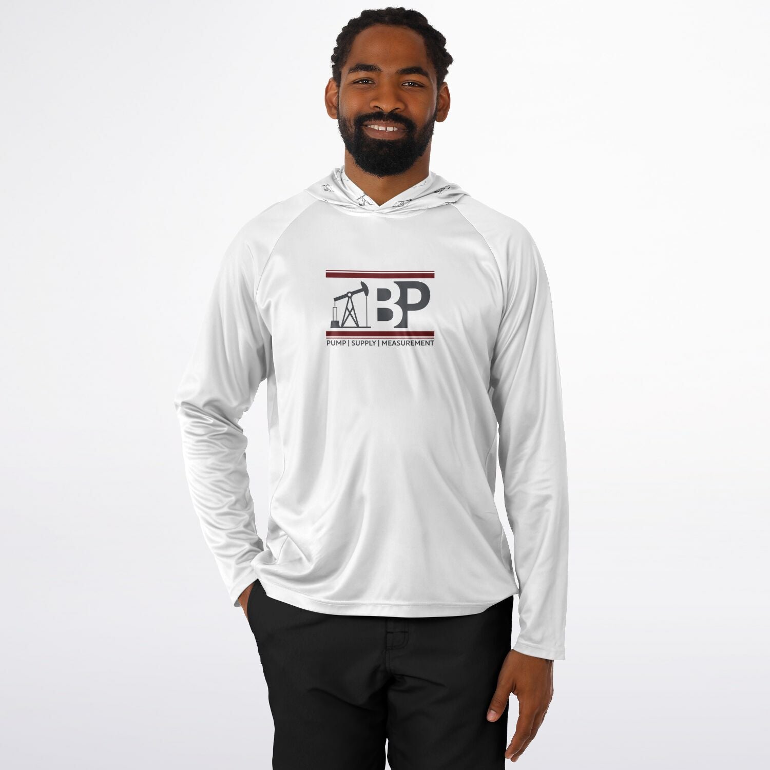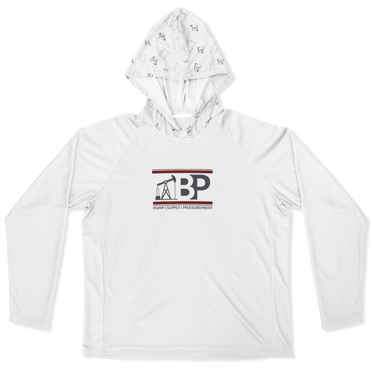 Men's Long Sleeve Hooded Performance Shirt - White w/ BP Logo