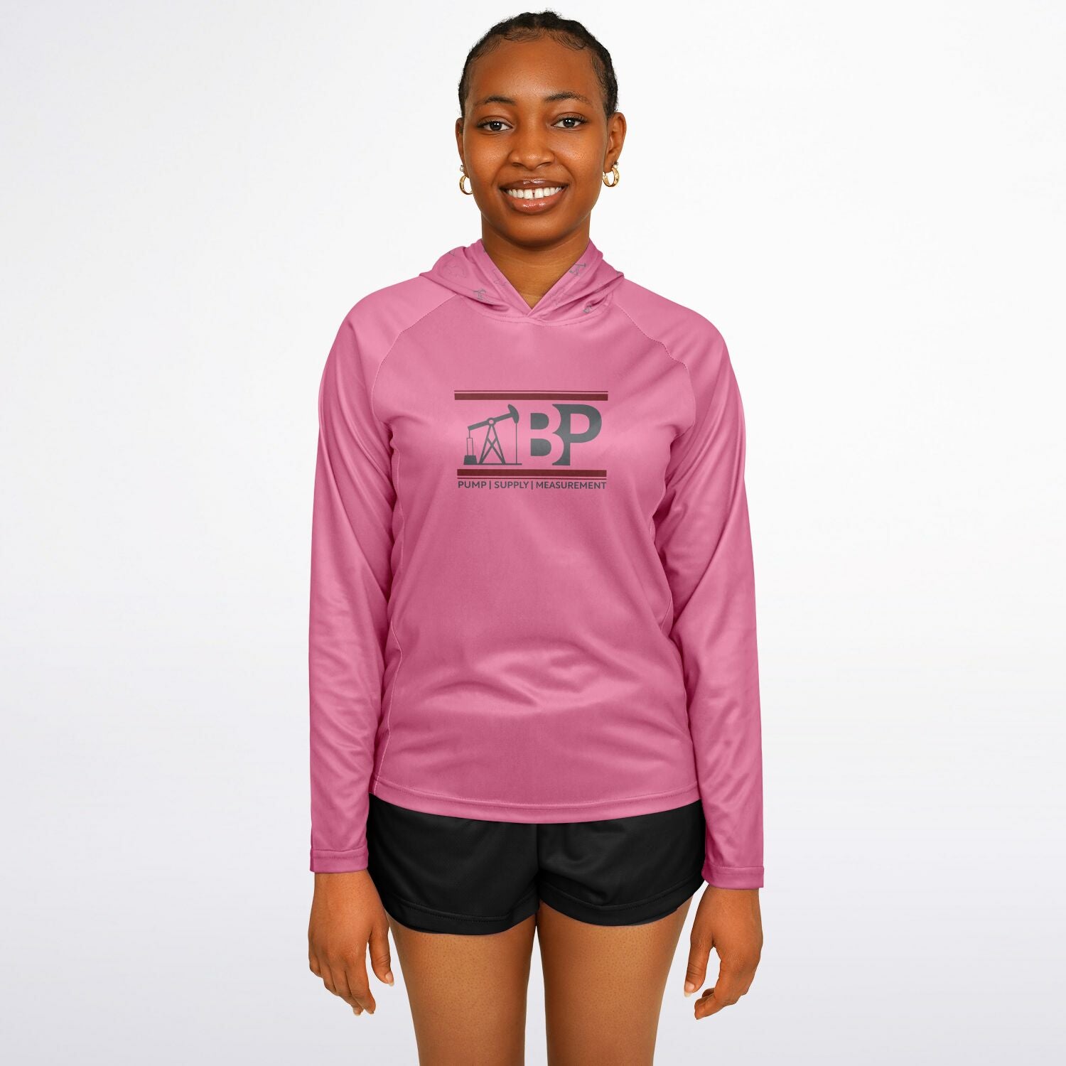 Women's Long Sleeve Hooded Performance Shirt - Pink w/ BP Logo